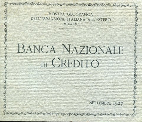 Mostra geografica dell'espansione italiana all'estero. Milano. Banca Nazionale di Credito. Settembre 1927