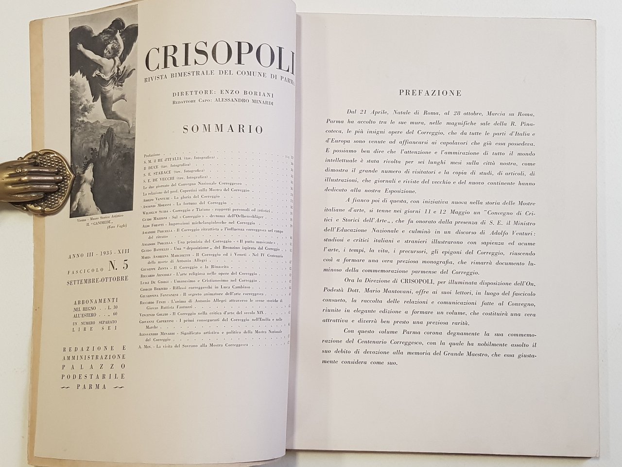 Mostra Nazionale del Correggio. Atti del Convegno Nazionale dei critici e storici dell'arte. Parma, maggio - ottobre XIII.<BR>Crisopoli n. 5, settembre - ottobre 1935 - XIII.