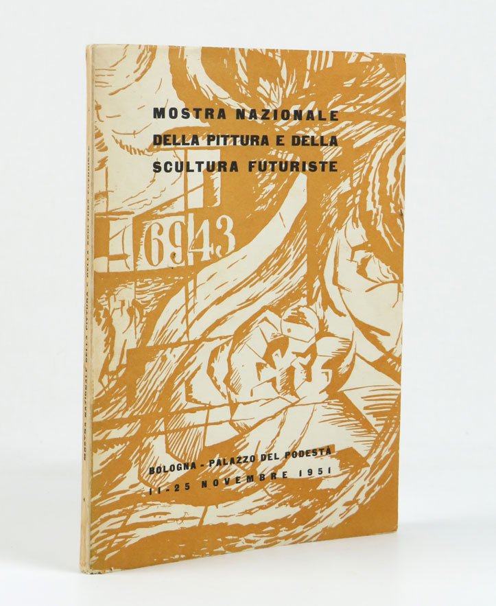 LIBROEdizione originale.Ottimo esemplare (da segnalare solo una leggerissima fioritura alla prima carta).Ultima grande mostra futurista storica, organizzata al Palazzo del Podestà di Bologna dall’ultimo «segretario del Movimento futurista italiano», Giovanni Korompay (1904-1988), che nel 1945 — assieme ad Angelo Caviglioni, Giovanni Acquaviva e Umberto Peschi — tentò di riorganizzare a Bologna gli scampoli del movimento dopo la morte di Marinetti. Principale esito fu questa importante occasione espositiva, realizzata con il decisivo contributo di Fortunato Depero ed Enrico Prampolini, autori in catalogo di due corposi contributi, rispettivamente «Geometria e pittura nucleare» e «Futurismo astrattismo e oltre». Tra gli altri scritti, oltre alla presentazione di Korompay, «Infinità dell’arte» di Acquaviva, «Futurismo e neofuturismo» di Rezio Buscaroli e un’estratto da «Le carte parlanti» n. 13-15, 1951, a firma di Carlo Carrà: «La pittura futurista nel suo movente storico». Nelle parole del bibliografo Domenico Cammarota questa «è l’ultima pubblicazione ufficiale del Movimento Futurista Italiano, già autoscioltosi l'anno prima». Corposo apparato iconografico, con schede biografiche e illustrazione per ciascuno degli artisti esposti, tra i quali segnaliamo, oltre agli organizzatori: Leandra Angelucci (La vita), Giacomo Balla, Enzo Benedetto, Umberto Boccioni (Cavallo cavaliere e caseggiato), Osvaldo Bot, Rezio Buscaroli, Leonardi Castellani, Italo Cinti, Primo Conti, Tullio Crali, Gerardo Dottori, Farfa, Fillia (Spiritualità aerea), Giannetto Malmerendi, Ugo Pozzo, Mino Rosso, Ardengo Soffici (Campi lavorati), Bruno Tano, Wladimiro Tulli.Cammarota, Futurismo, VI.96