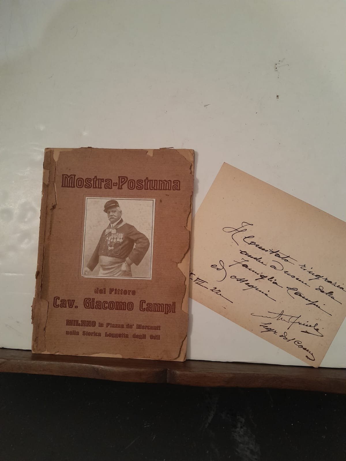 Legatura salda il volume,copertina staccata,pagine sane,COMPLETO. Allegata cartolina invito alla mostra Luglio 1922; sul retro, a mano ringraziamenti del Segretario Angelo Friuli in data 15 VII 1922. Segretario del Comitato. Milano Piazza de' Mercanti Loggetta degli Osii