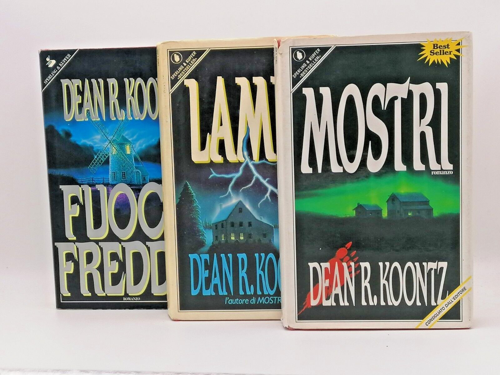 Dean Koontz, Mostri, Lampi, Fuoco freddo - Lotto di 3 libri Milano, Sperling & Kupfer, Prime edizioni italiane Autore: Dean Koontz Editore: Sperling & Kupfer Anno di pubblicazione: 1989, 1990, 1992 Formato: rilegato con sovraccoperta 2D-2-5 /6 /7 Descrizione Lotto di tre libri dello scrittore americano noto per i suoi horror fantascientifici Condizioni del libro Buone condizioni generali