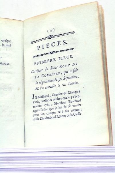 22 pages (manque 1 feuillet, probablement le faux-titre) (19x13cm). Broché. Feuillets légèrement écornés. Petites salissures. Finance. Economie. Rare.