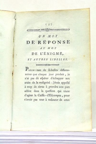 MOT (Un) de Réponse au Mot de l'Enigme, et autres libelles.
