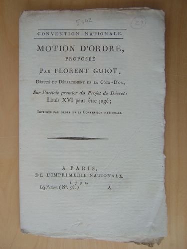 Motion d'ordre, proposée par Florent Guiot, Député du Département de la Côte-D'Or, sur l'article premier du projet de Décret : Louis XVI peut être jugé
