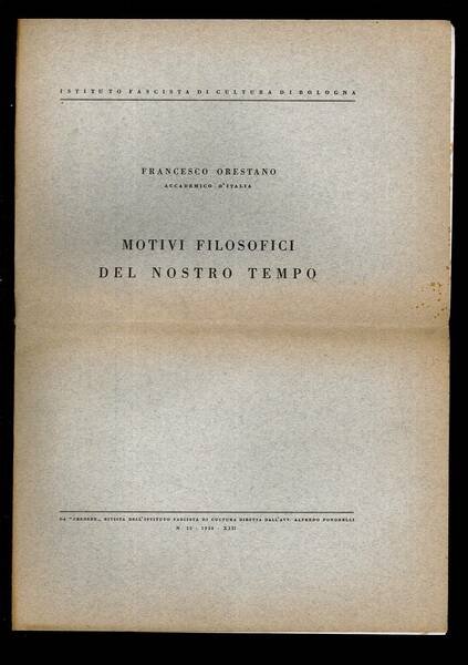 Opuscolo vintage. Estratto da "Credere" Rivista dell'Istituto Fascista di Cultura Diretta dall'Avv. Alfredo Pondrelli - N. 12 - 1934 - XIII. Ordinario segno del tempo.