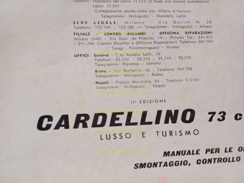 Moto Guzzi Cardellino 73 Lusso - Turismo II edizione manuale officina originale