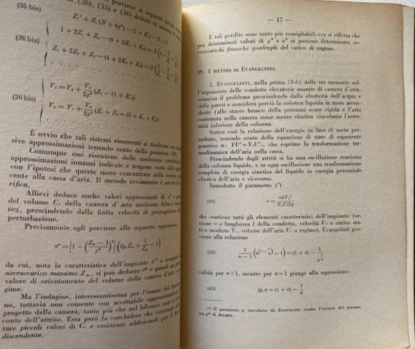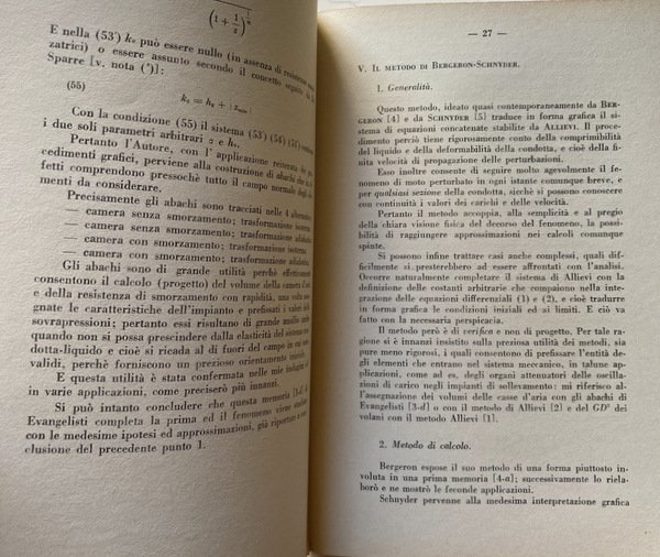 Soggetti: Ingegneria Civile e Ambientale, Sistemi acquedottistici, Idraulica, Impianti di sollevamento, Libri antichi, Studi Scientifici, Collezionismo, Liquidi, Macchinari, GD2, Libri rari, Condutture, Moto, Dinamica, Lezioni universitarie, Corsi, Università, Anni Cinquanta, Ingegneri napoletani, Condotte elevatorie, Tecnica, Geotecnica, Pompaggio, Potenza, Pozzi piezometrici, Torri piezometriche, Volani, Colpo dell'ariete, Pompa, Alimentazione, Fiumi, Acquedotti, Giuseppe Evangelisti, Soluzioni, Girolamo Ippolito, Allievi, Gebel Cirenairo, Guido Nebbia, Bergeron, Schnyder, El Gebu, Berta-Bsciara, Velocità, Calcoli, Accelerazione di gravità, Energia, Forza, Fisica meccanica, Abachi, Abaco, Perturbazioni, Problemi, Grafici, Equazioni, Sovraccarichi, Turbine idrauliche, Attrito, Tubi, Metodi di calcolo, Trasformazione adiabatica, Isoterma, Condotta forzata, Situazioni idrodinamiche, Oscillazioni, Elettrotecnica, Hydraulique, Pompes Centrifuges élévatoires, Rampone, Libri da collezione, Risorse idriche, Esperimenti, Indagini, Pressione, Impianti idroelettrici, Formule, Anni Trenta, Anni Quaranta, Levi, Dufour, Tocchetti, Zeller, Schneider, Metodo grafico Schnyder-Bergeron, Diagramma, Water Engineering, Civil and Environmental Engineering, Aqueduct Systems, Hydraulics, Lifting Systems, Ancient Books, Scientific Studies, Collecting, Liquids, Machinery, Rare Books, Pipelines, Motorcycles, Dynamics, University Lessons, Courses, Universities, Fifties, Neapolitan Engineers, Lift Pipelines, Technique, Geotechnics, Pumping, Power, Piezometric wells, Piezometric towers, Flywheels, Water hammers, Pump, Feeding, Rivers, Aqueducts, Giuseppe Evangelisti, Solutions, Speed, Calculations, Acceleration of gravity, Energy, Force, Mechanical physics, Abacus, Perturbations, Problems, Graphs, Equations, Overloads, Hydraulic turbines, Friction, Pipes, Calculation methods, Adiabatic transformation, Isotherm, Penstock, Hydrodynamic situations, Oscillations, Electrical engineering, Collectible books, Water resources, Experiments, Investigations, Pressure, Hydroelectric Plants, Formulas, Thirties, Forties, Graphic Method, Diagram, Rarità, Old books, Rarities, Italy