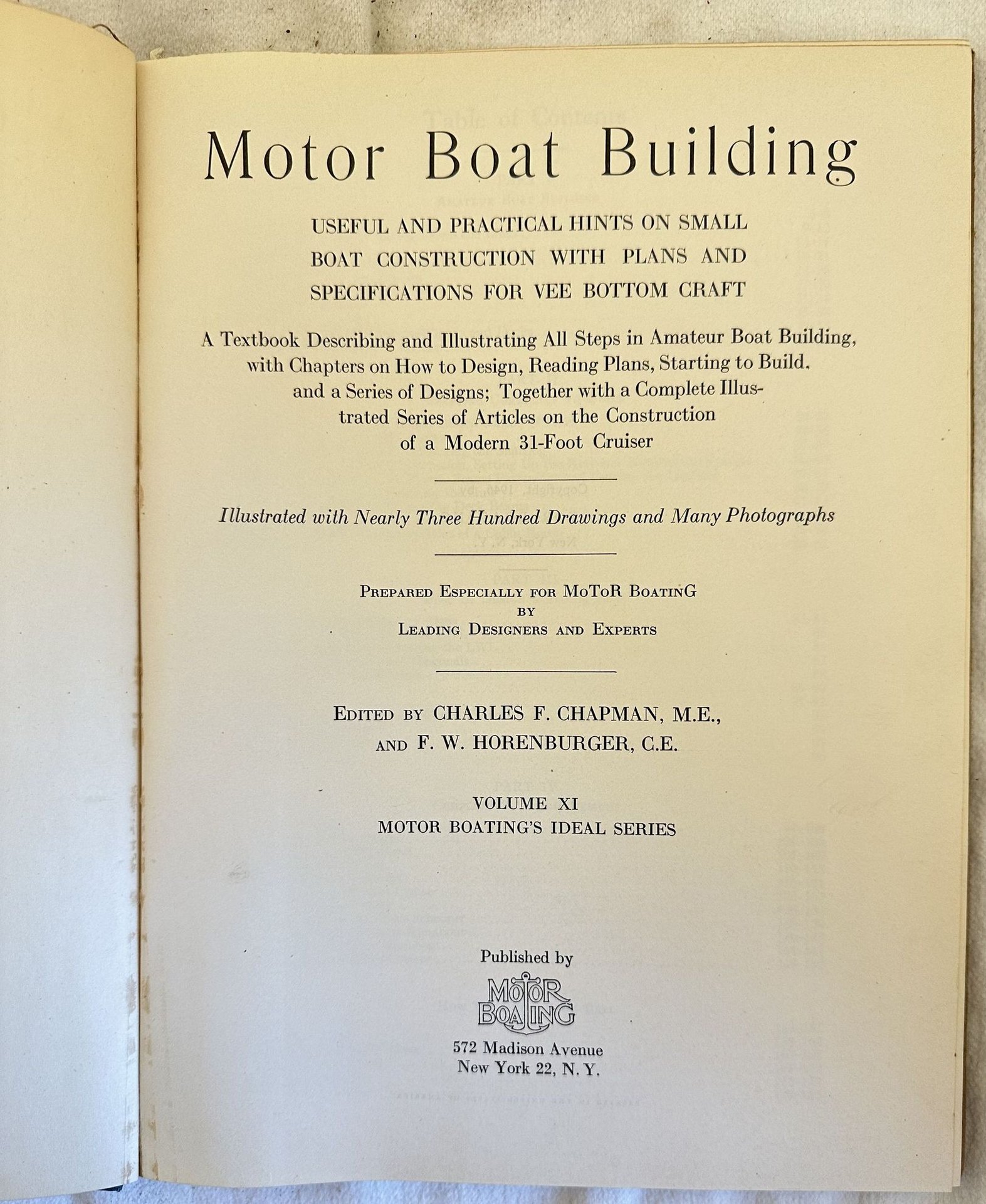 MOTOR BOAT BUILDING USEFUL AND PRACTICAL HINTS ON SMALL BOAT CONSTRUCTION WITH PLANS AND SPECIFICATIONS FOR VEE BOTTOM CRAFT ILLUSTRATED WITH NEARLY THREE HUNDRED DRAWINGS AND MANY PHOTOGRAPHS PREPARED ESPECIALLY FOR MOTOR BOATING