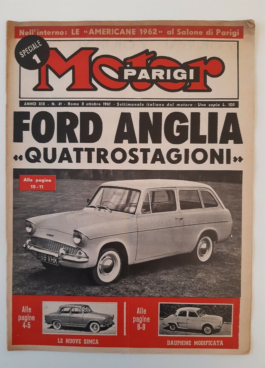 MOTOR RIVISTA SETTIMANALE ITALIANO DEL MOTORE 8 OTTOBRE 1961 ANNO XIX N. 41