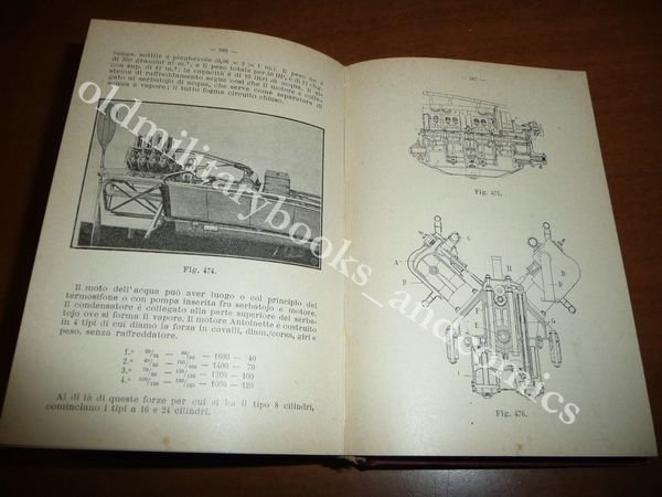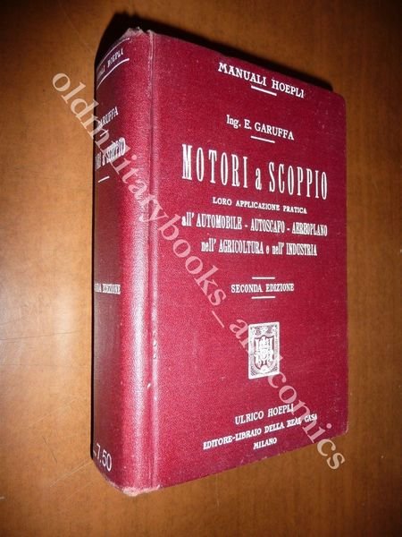 TITOLO: MOTORI A SCOPPIO E LORO APPLICAZIONE PRATICA ALL'AUTOMOBILE, ALL'AUTOSCAFO E ALL'AEROPLANO, NELL'AGRICOLTURA E NELL'INDUSTRIA DESCRIZIONE: Ed. Hoepli, Milano, 1914, in 16°, leg. s.pelle rossa con tit. bianco su piatto e dorso, pp. 912 con 578 incisioni b/n n.t., 2^ edizione rifatta e ampliata. Indice: I - Generaltà sui motori a grande velocità ed a più cilindri; II - L'automobile terrestre; III - La navigazione automobile; IV - La navigazione aerea; V - Cenno sull'impiego dei motori a scoppio veloci a cilindri semplici o multipli nell'industria o nell'agricoltura. Indice completo in foto. CONDIZIONI: Ottime. PESO / WEIGHT: 550 gr. without package