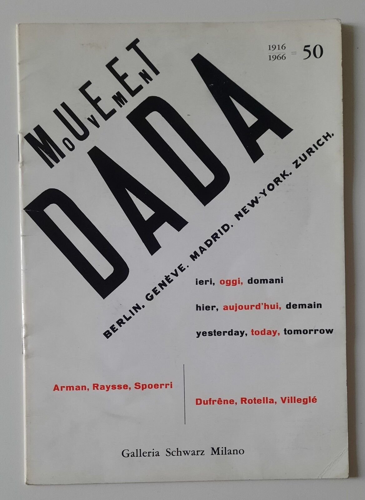 MOUVEMENT DADA 1916-1966 GALLERIA SCHWARZ MILANO 1966In 8°, pag. 16, legatura editoriale, copertina illustrata, ill. in b/n.In ottime condizioni, lievissimi segni del tempo