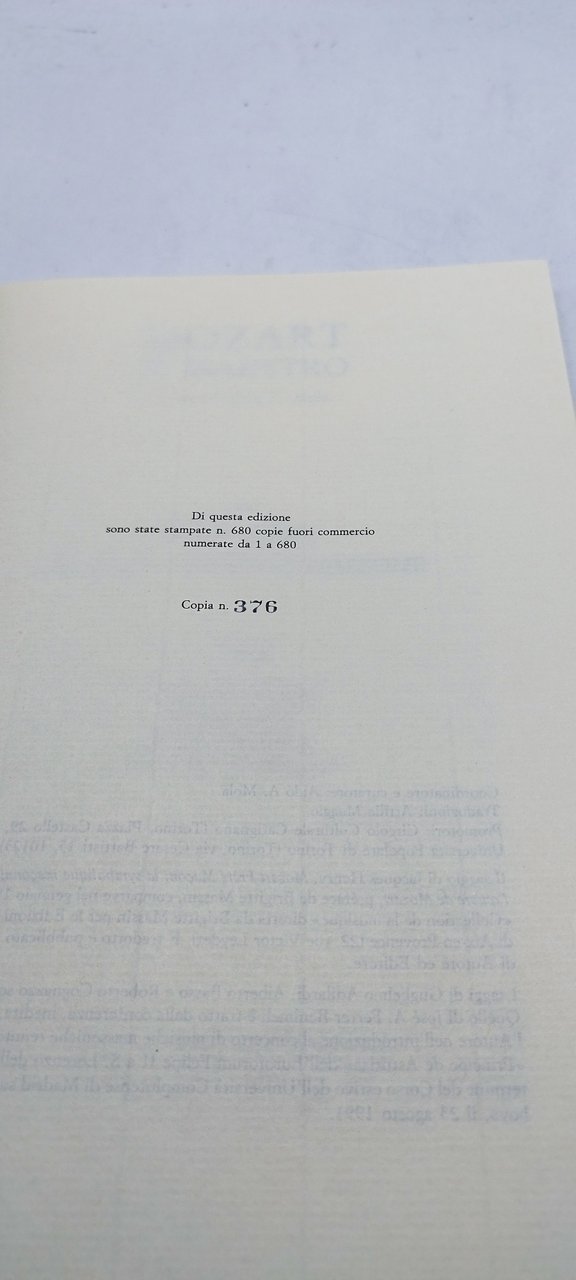 . mozart il maestro copia numerata. , circolo culturale carignano 1991 italiano, 174 °°brossura