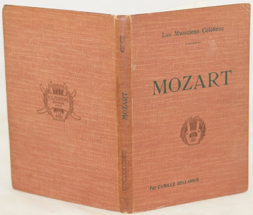 In 8. Dim. 20,5x14 cm. Pp. 124+(4). Edizione senza data ma dei primi anni del '900 di questa biografia su Wolfgang Amadeus Mozart (1756-1791) di Camille Bellaigue della collana "Les musiciens celebres". Alcune planches all'interno. Alla fine catalogo delle opere di Mozart e note bibliografiche. In discrete condizioni. Copertina in tela editoriale in buone condizioni generali con lievi usure ai margini e dorso. Legatura in discrete condizioni con rotture. All'interno le pagine si presentano in ottime condizioni con rare fioriture. Not dated edition but of the first years of 1900 of this biography about Wolfgang Amadeus Mozart (1756-1791) by Camille Bellaigue of the series "Les musiciens celebres". Some planches inside. At the end catalogue of works of Mozart and bibliographic notes. In fair conditions. Cloth editorial cover in good general conditions slightly worn in the edges and spine. Binding in fair conditions with cracks. Inside pages are in very good conditions with occasional foxings.