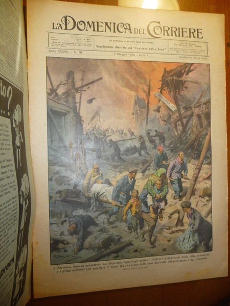 DESCRIZIONE: LA DOMENICA DEL CORRIERE 5 maggio 1935 In copertina: A Formosa dopo la catstrofe provocata dal terremeto e dall'incendio. Al retro: Mulo testardi si ribella e travolge il suo padrone CONDIZIONI DELL'OGGETTO: Buone/Ottime senza sovraccoperta azzurrina. PESO/WEIGHT: 54 g without package