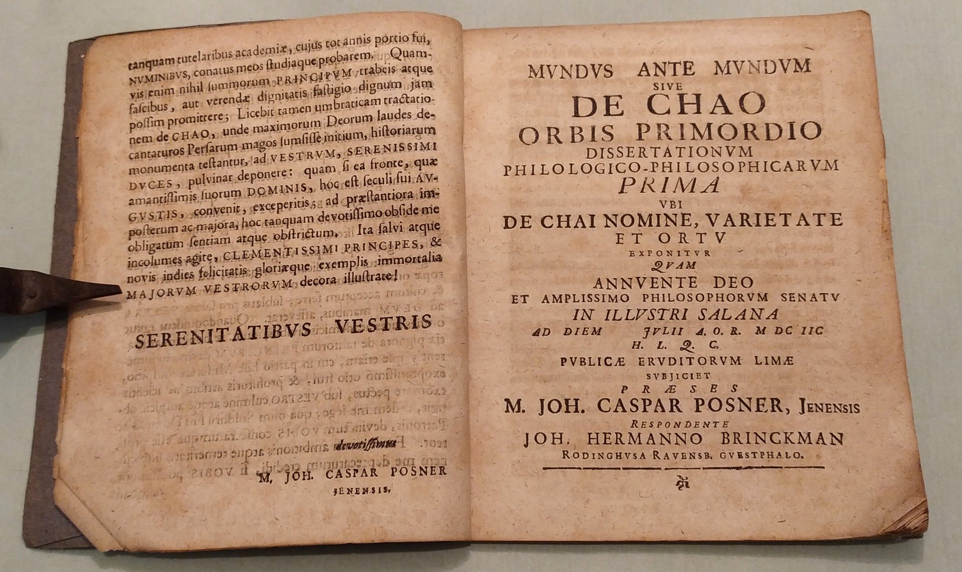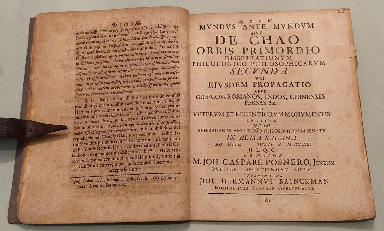 Mundus ante mundum sive de chao orbis primordio: dissertationes philologico philosophicae quattuor M. Joh. Caspari Posneri Jenensis.