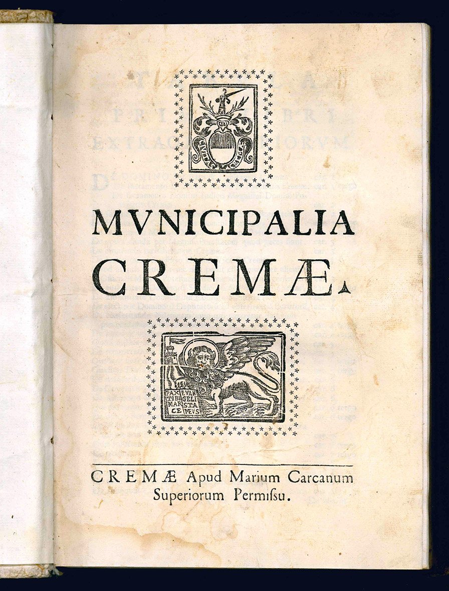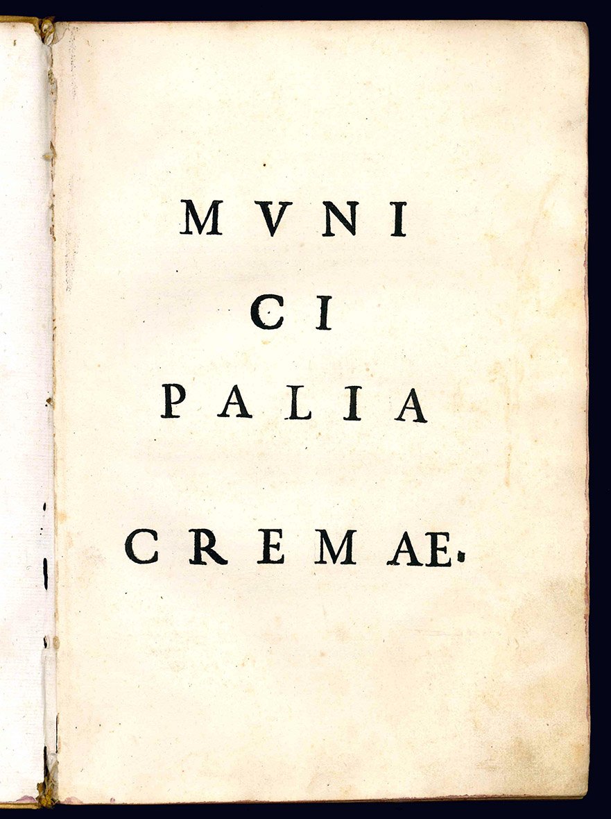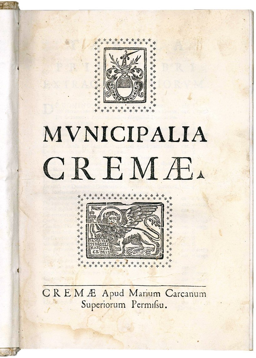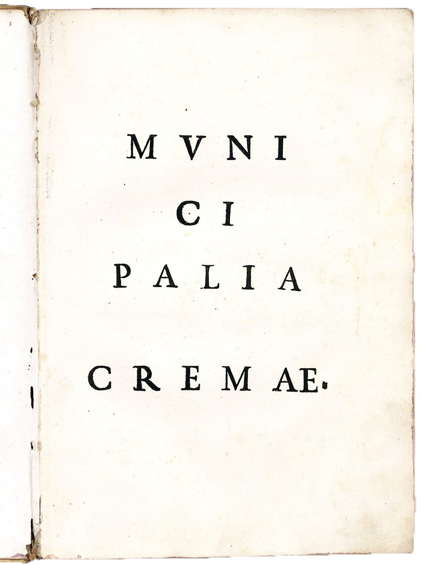 CREMA. Municipalia Cremae. Colophon: Crema, Mario Carcano, 1723.