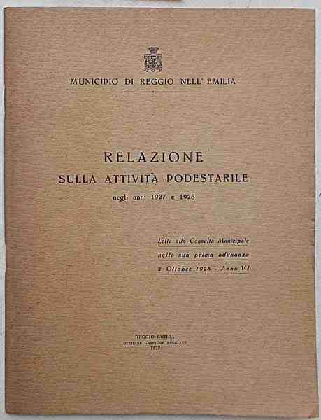 Municipio di Reggio Emilia. Relazione sull'attività podestarile negli anni 1927 e 1926.