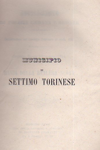 Municipio di Settimo Torinese. Regolamento di polizia urbana e rurale. Deliberazione del Consiglio Comunale 23 aprile 1854. Decreto Reale 13 maggio 1854. Bandi della Bealera Nuova