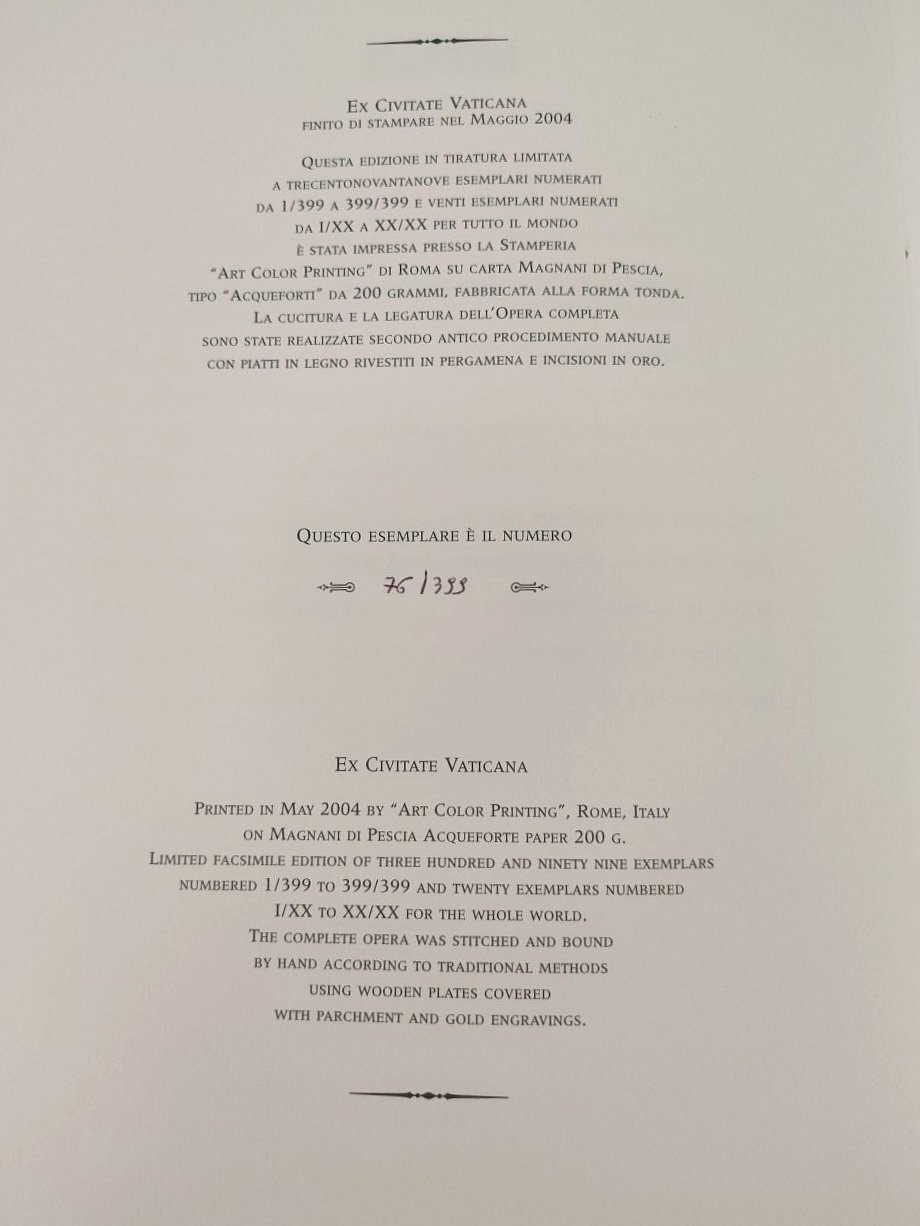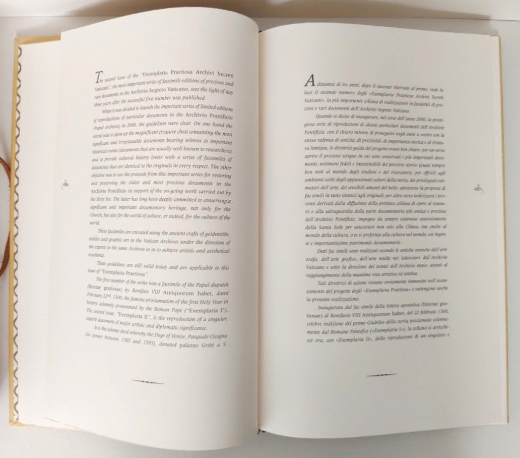 Dettagli cm.30x47, Exemplaria Praetiosa II . Archivio Segreto Vaticano. Stampato da "Art Colour Printing", Roma, Italia su carta Magnani di Pescia Acqueforte 200 g.