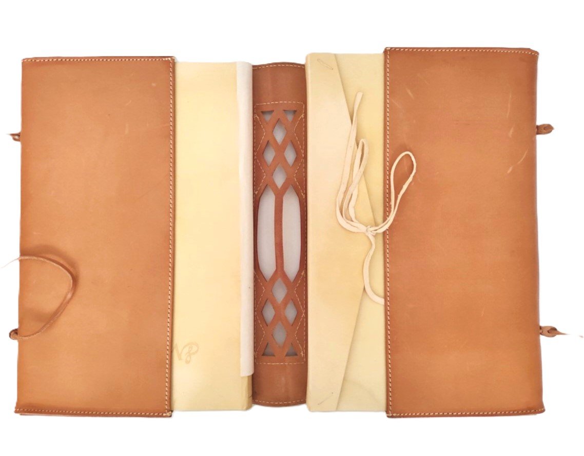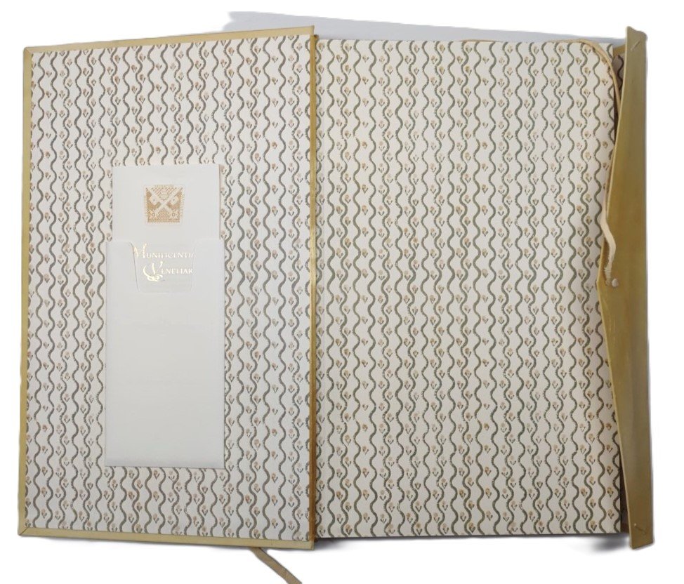 La cassa è in pelle e rilegature in pelle di vitello e presenta eleganti intarsi sul dorso. Questa bella custodia contiene il facsimile del documento e un volume esplicativo (con l'edizione del documento stesso e il suo background storico) in pergamena di capretto con le consuete legature dei documenti antichi.