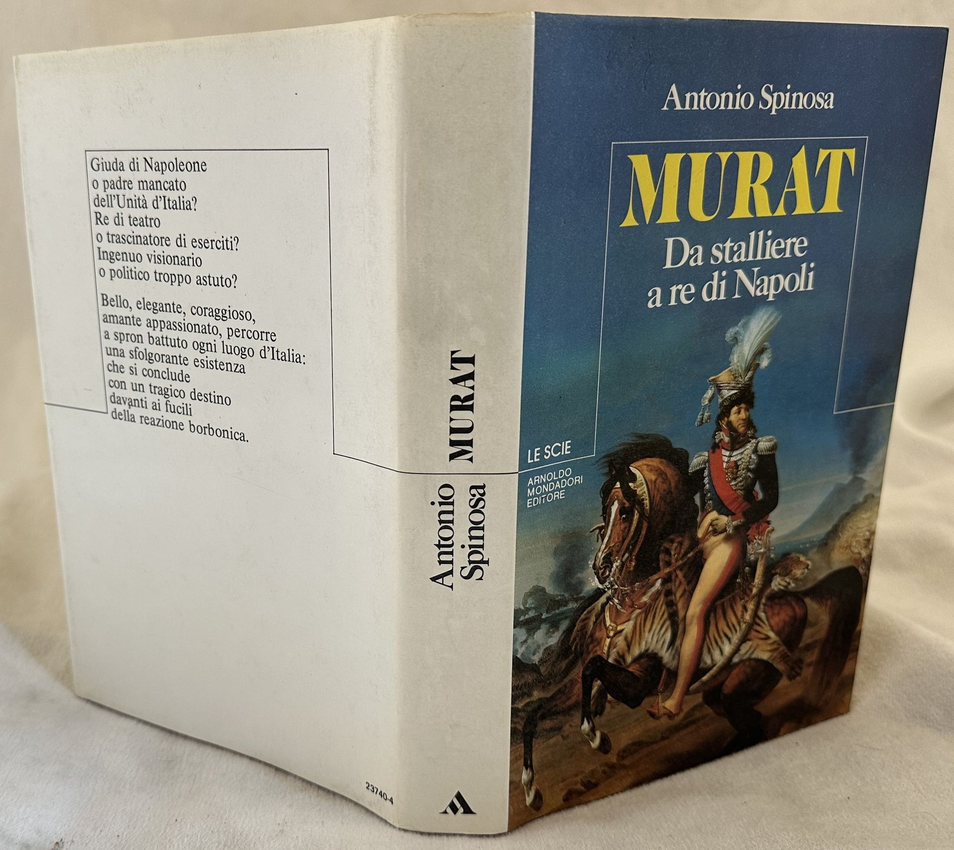 Prima edizione del 1984 di questa monografia su Gioacchino Murat (1767-1815) scritta da Antonio Spinosa.<BR><BR>All'interno sono presenti alcune tavole fotografiche fuori testo.<BR><BR>In ottime condizioni.<BR><BR>Copertina in tela editoriale con sovraccoperta in ottime condizioni generali con lievi usure. Legatura in buone condizioni. Pagine in ottime condizioni con rare fioriture. In 8. cm 22,5x14,5. Pp. 411+(7).
