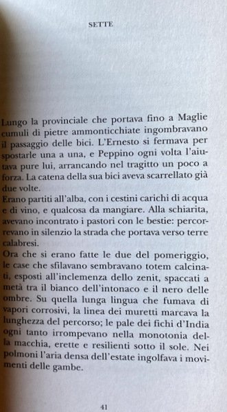 Soggetti: Narrativa, Letteratura italiana contemporanea, Romanzi, Saghe familiari, Formazione, Agro salentino, Puglia, Scrittrici pugliesi, Anni Cinquanta, Occupazione, Terre, Campagna, Contadini, Riforma agraria, Dialetto pugliese, Malocchio, Tradizioni locali, Storia, Romanzi storici, Pescatori, Romanzo corale, Fame, Dopoguerra, Male, Salento, Rivolte, Sciagure, Povertà, Miseria, Emarginazione, Disperazione, Emarginati, Proprietà, Lotta di classe, Comunismo, Miti, Ideologie politiche, Credenze, Leghe contadine, PCI, De Gasperi, Sezioni locali, Politica, Taranto, Nardò, Vittorio Bodini, Murene, Magia, Latifondo, Latifondisti, Sud Italia, Donne, Sovrannaturale, Rapporto padri e figli, Detti popolari, Libri Fuori catalogo, Novità editoriali, Fiction, Contemporary Italian literature, Novels, Family sagas, Education, Apulian writers, Fifties, Occupation, Lands, Countryside, Peasants, Agrarian reform, Apulian dialect, Local traditions, History, Historical novels, Fishermen, Choral novel, Hunger, Post-war, Evil, Revolts, Woe, Poverty, Misery, Marginalization, Despair, Marginalized, Property, Class struggle, Communism, Myths, Political ideologies, Beliefs, Peasant leagues, Local sections, Politics, Murene, Magic, Latifundia, Landowners, Southern Italy, Women, Supernatural, Fathers and sons relationship, Popular sayings, Out of print books, Editorial news, Moray