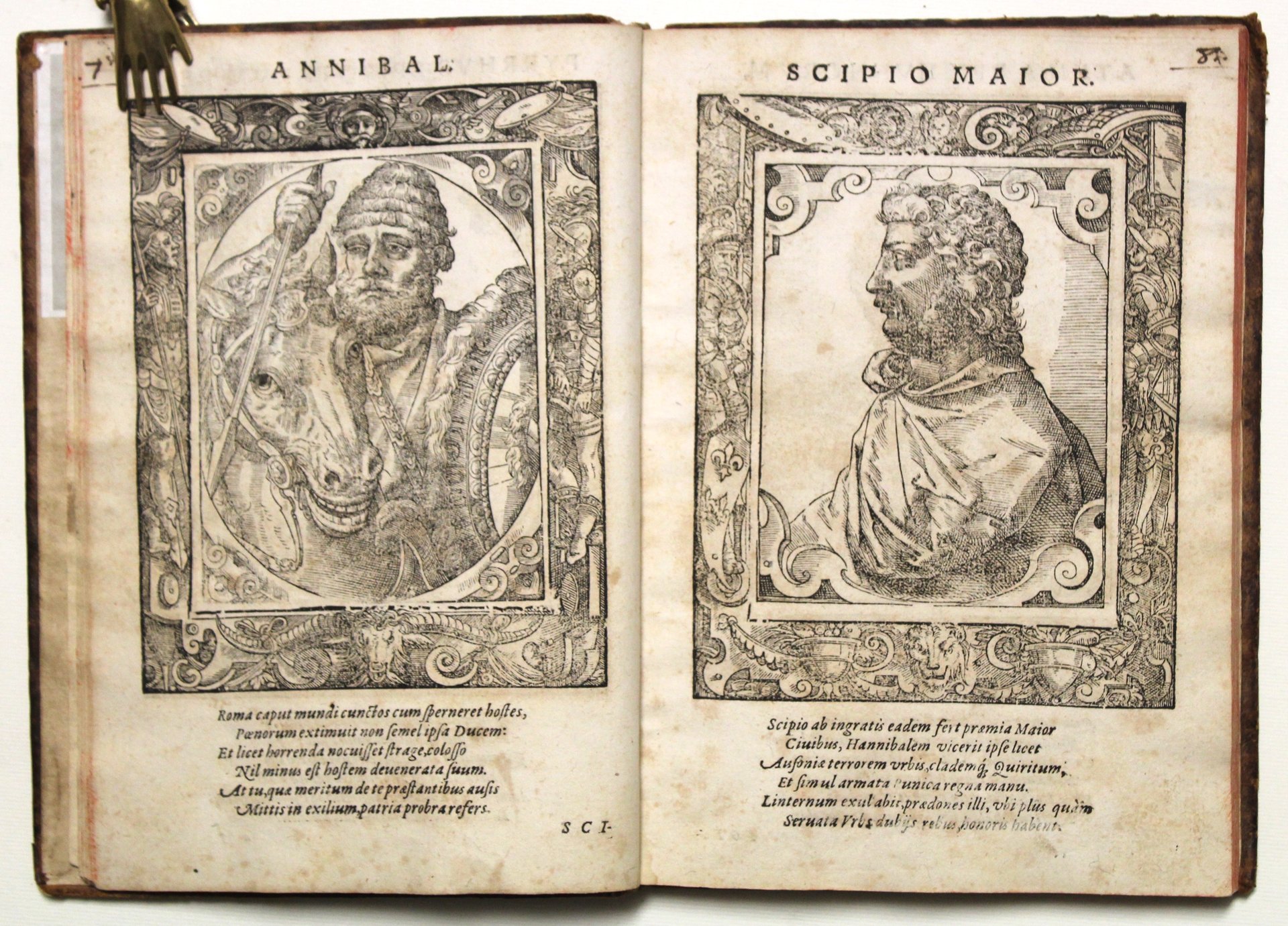 In 4° (mm 210x145); carte non num. 72 (compresa l'ultima bianca) con 134 splendidi ritratti a piena pagina entro bordura ornamentale con 6 brevi linee di testo a pie' di pagina. Buona legatura settecentesca in tutta pelle, con dorso a cinque nervi, piccoli fregi e titolo in oro su tassello, tagli rossi. <BR>Rara edizione sulla celebre raccolta di ritratti del museo gioviano. Ritratto di un antenato del dedicatario dell'opera. Sono inoltre realisticamente raffigurati fra gli altri, a partire da Romolo, Alessandro Magno, Annibale e Scipione, Attila, Carlo Magno, Can Grande della Scala, il Gattamelata, Francesco Sforza, Cosimo de' Medici, bartolomeo Colleoni, Mattia Corvino, Galeazzo Sforza, Francesco Gonzaga, Alfonso d'Este, Ferdinando Cortez, Solimano per finire con Niccolò Capponi. Buon esemplare con lieve arrossamento generale e qualche piccola macchia. Le tavole riportano in alto un numero manoscritto.Adams M,1895;Thacher, II, p. 100 (Miscellanea); ICCU, IT\ICCU\PARE\067924 riporta due soli esemplari in Italia.