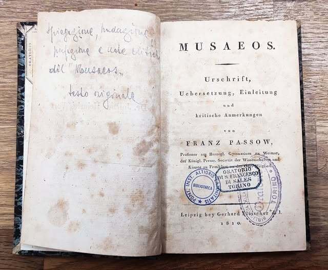 Musaeos. Urschrift, Uebersetzung, Einleitung und kritische Anmerkungen von Franz Passow, Professor am Herzogl. Gymnasium zu Weimar, der Königl. Preuss. Societät der Wissenschaften und Künste zu Frankfurt an der Oder Mitglie