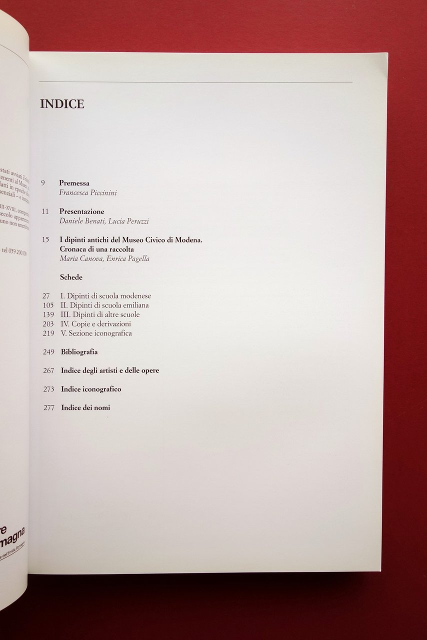 AA. VV., Musei Civici di Modena - I Dipinti Antichi a cura di Daniele Benati e Lucia Peruzzi Franco Cosimo Panini, Modena 2005; cm 30x21; pp. 288 con numerosissime ill. in b/n e a col. nel t. e fuori t.; brossura ed. ill. a colori. Condizioni di conservazione Esemplare in ottime condizioni, pressoché mai sfogliato. SETT130.L22412 N
