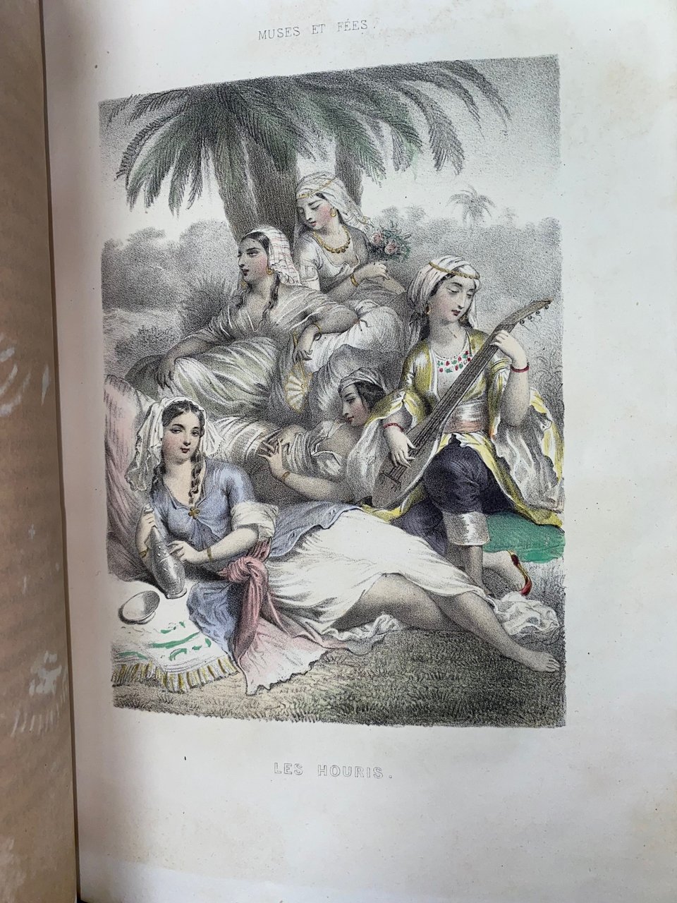vol.unico-formato in 8°- leg. originale in tela verde con piatti e costa decorati finemente in oro con figure femminili e ghirlande di fiori- 1c.b+1-frontespizio ill.+1-XXIV+292+1c.b- 12 tav. illustrate(frontespizio compreso) a piena pagina con colorazione a mano coeva - veline di protezione ingiallite ma ill. in ordine-leg. leggermente sbiadita la leg. alle cerniere ed ai margini .Taglio delle pagine in oro- Nel complesso buon esemplare