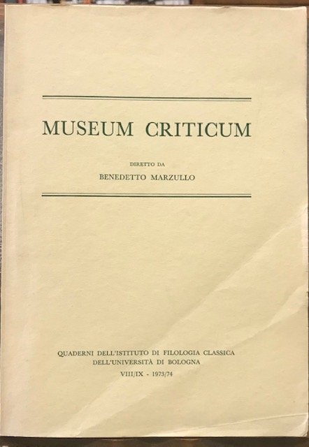 MUSEUM CRITICUM., Diretto da Benedetto Marzullo., volume VIII/X. 1973/74.