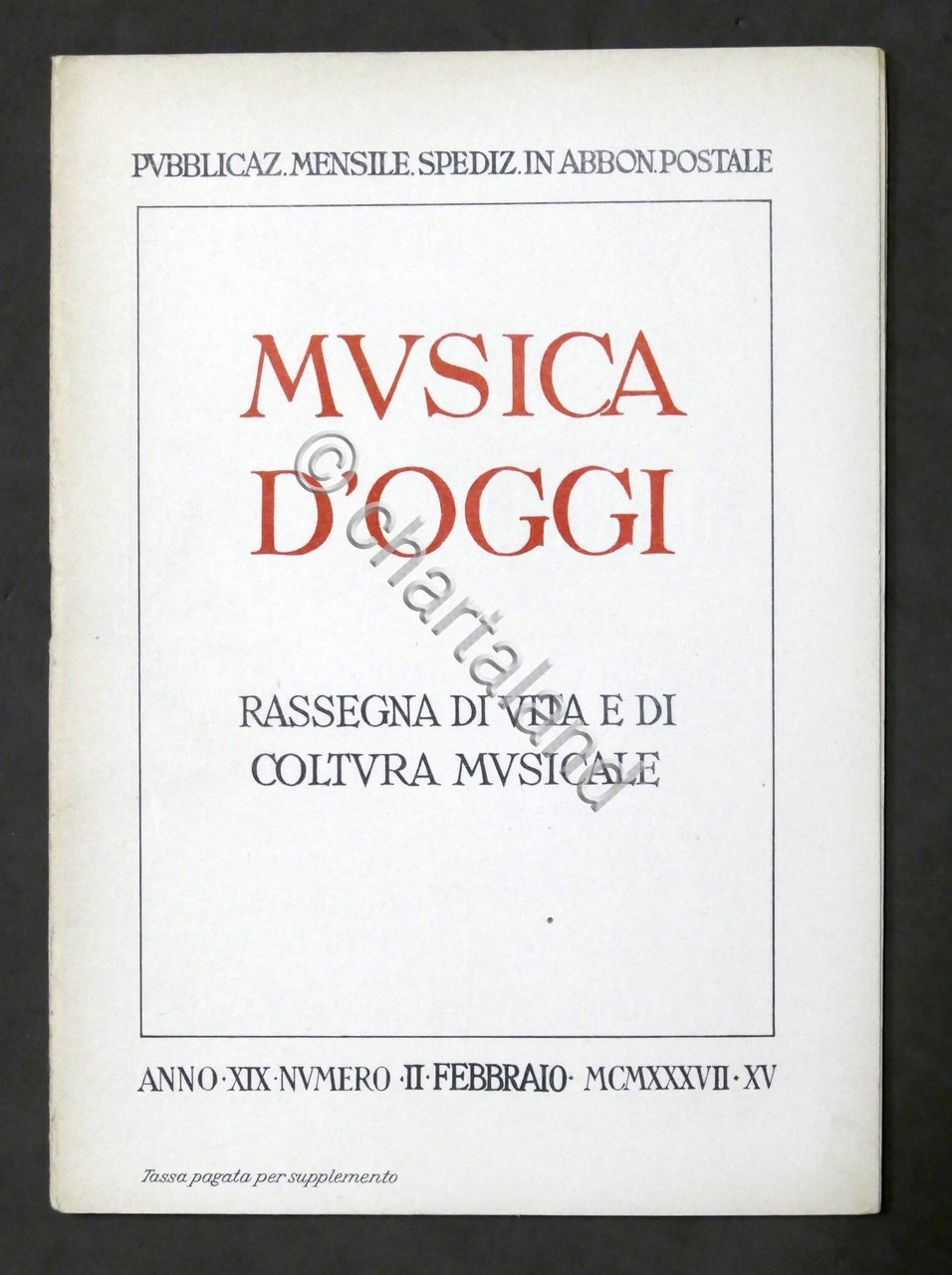 Musica d'Oggi - Rassegna di vita e cultura musicale - N. 2 - febbraio 1937 Pag. 40 ca. Copertina morbida - Testo in italiano. Condizioni molto buone.