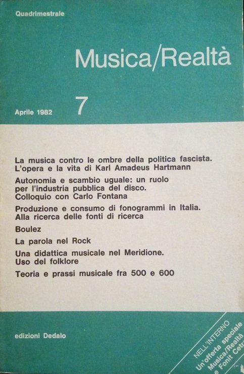 MUSICA/REALTA' - APRILE 1982, NUMERO 7