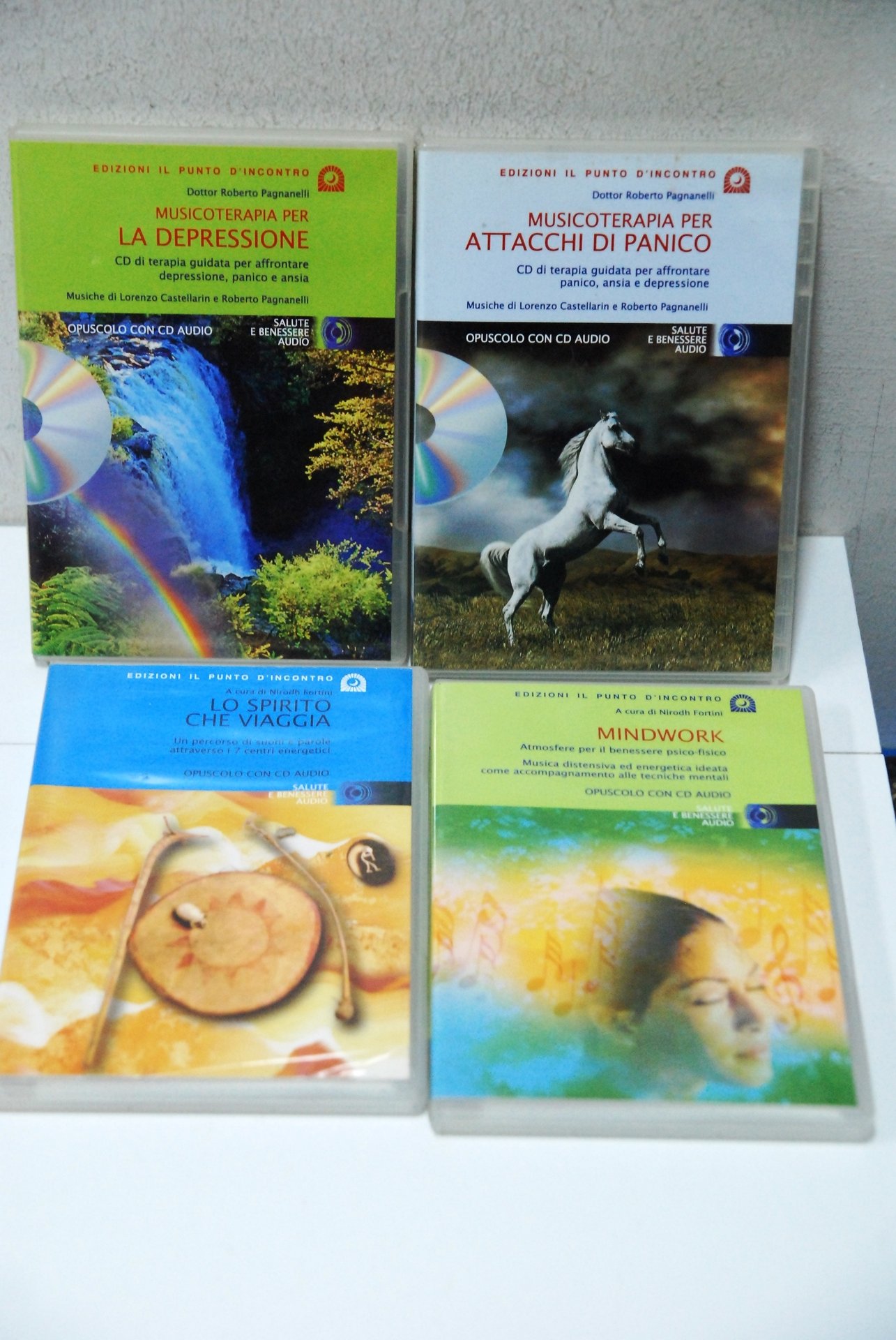4 cd opuscolo audio salute e benessere musicoterapia per la depressione attacchi di panico lo spirito che viaggia mindwork 4 CD NUOVI. il punto d'incontro .