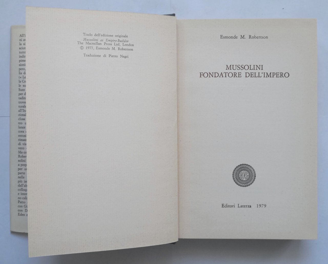 MUSSOLINI FONDATORE DELL'IMPERO di Esmonde M Robertson 1979 Laterza Libro