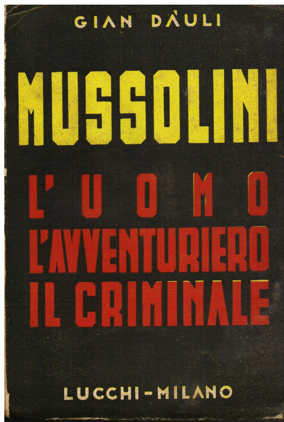 In-8°, pp. 314, (6), brossura editoriale nera con titolo a più colori. Fotografie e caricature in b.n. f.t. Esemplare con diffuse sottolineature e note a matita. Prima edizione, postuma, con introduzione di C. Siniscalchi. Gian Dáuli, pseudonimo di Giuseppe Ugo Nalato (Vicenza, 1884 - Milano,1945), fu fecondo romanziere, critico, traduttore, che concorse a divulgare in Italia autori del calibro di Yeats, Schnitzler, Mann, Bernanos, Céline, ecc., soprattutto attraverso la benemerita collana 'Scrittori di tutto il mondo'. Spaducci, p. 140.