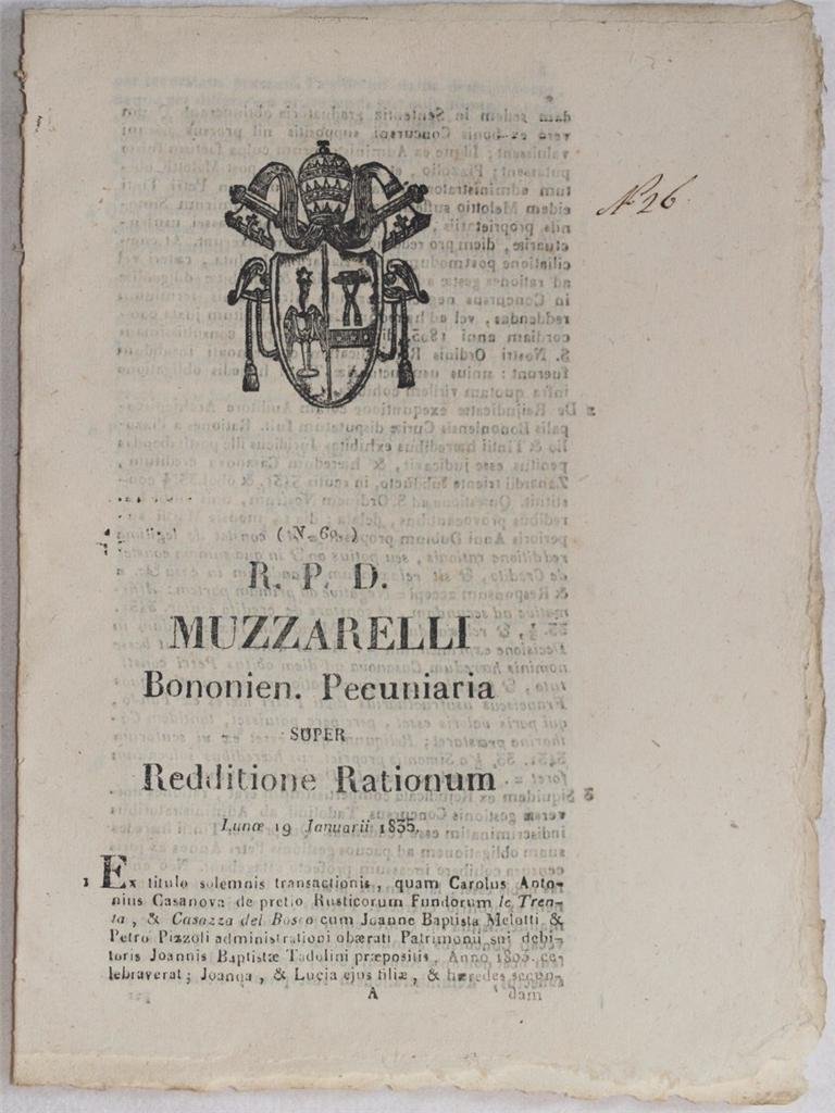 MUZZARELLI BONONIEN PECUNIARIA SUPER REDDITIONE RATIONUM LUNOE 19 JANUARII 1835