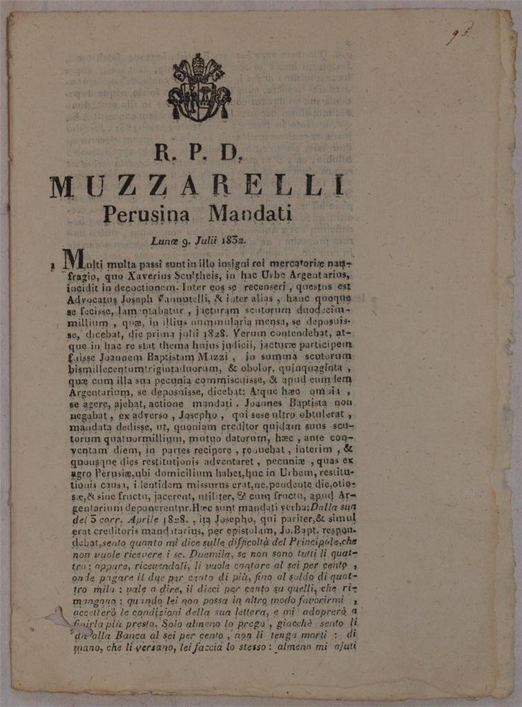 MUZZARELLI PERUSINA MANDATI LUNOE 9 JULII 1832