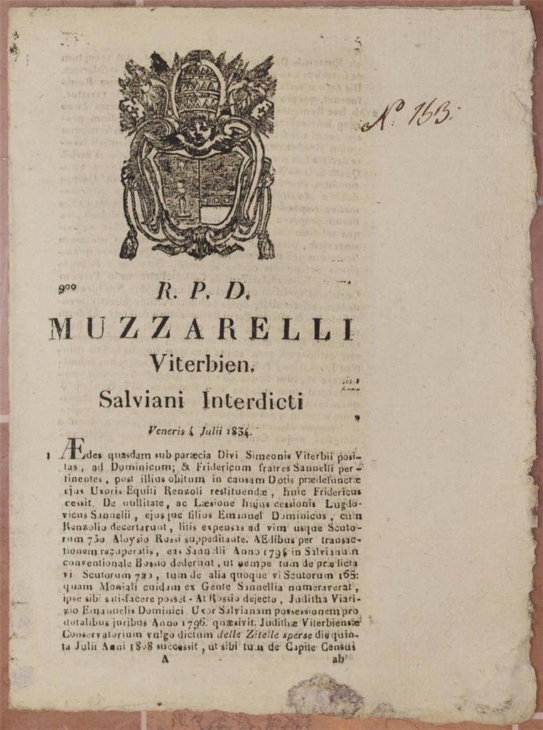 MUZZARELLI VITERBIEN SALVIANI INTERDICTI VENERIS 4 JULII 1834