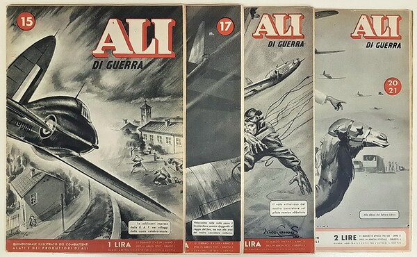 Edizione: n. 4 fascicoli del quindicinale illustrato dei combattenti alati e dei produttori di ali: ali di guerra (anno ii) 1942 - numeri 15 (10 gennaio) - 17 (10 febbraio) - 19 (10 marzo) - 20.21 (25 marzo - 10 aprile).