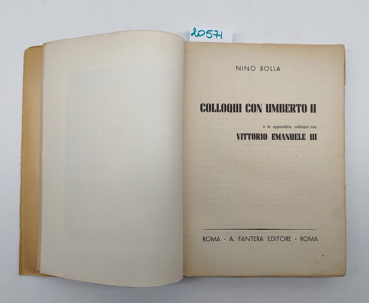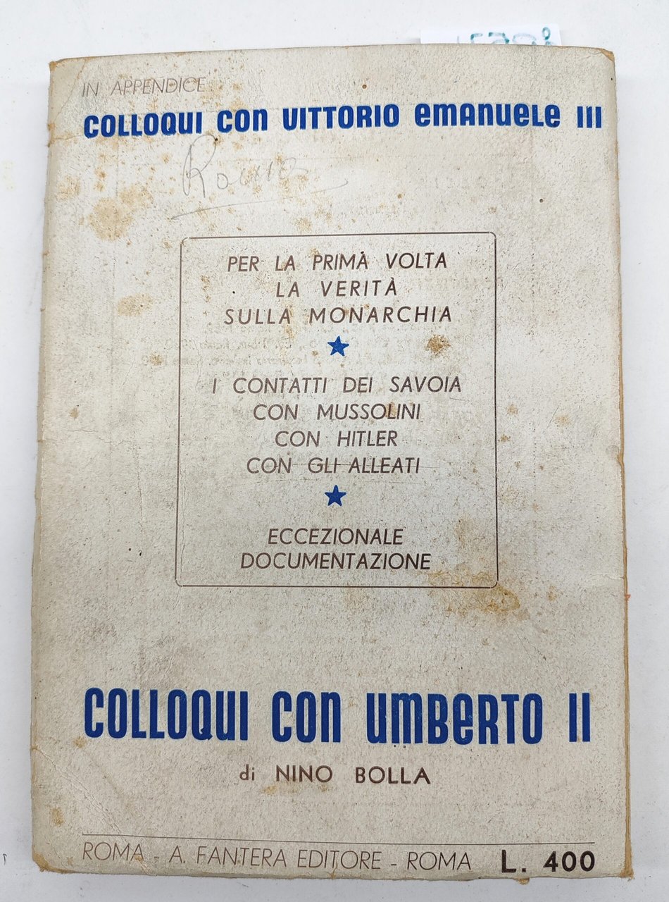 N. Bolla Colloqui con Umberto II e in appendice Colloqui con Vittorio Emanuele III A. Fanteria 1949