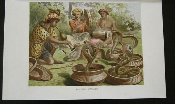 Naia dagli occhiali. Tratto da "La vita degli animali" di A.E. Brehm. Seconda edizione sulla terza tedesca a cura del Prof. M. Lessona.