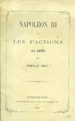 In-8°, pp. 18, brossura editoriale protetta da velina con titolo entro bordura. Perfetto stato. Edizione originale. Opuscolo su Napoleone III e le istanze per muovere guerra alla Prussia mosse all'Imperatore dalla stampa e dalla pubblica opinione, istanze che poi culimarono, pochi mesi dopo, nello scoppio della Guerra Franco-Prussiana. L'opuscolo, a titolo di curiosità, figurava nella biblioteca di Alessandro Manzoni.