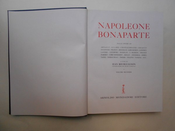 Cm. 32 x 25; pp. XXIII - 424, XII - 419; numerose illustrazioni fuori testo e nel testo sia a colori che b/n; legatura editoriale in similpelle con stemma di Napoleone in oro al piatto anteriore, titolo e fregi oro al dorso; cofanetto editoriale figurato; capitelli; segnalibri.<BR>Coffanetto con qualche segno d'uso; per il resto in ottimo stato.<BR>Prima edizione. Scritti dalle opere di Arnault, Aulard, Chateaubriand, Chuquet, Fournier, France, Houssaye, Kircheisen, Lanfrey, Lavisse, Lefebvre, Madelin, F. Masson, Mignet, Pariset, Lord Rosebery, Seeley, Stendhal, Sorel, Taine, Thibaudeau, Thiers, Tolstoj, Vandal, ecc.