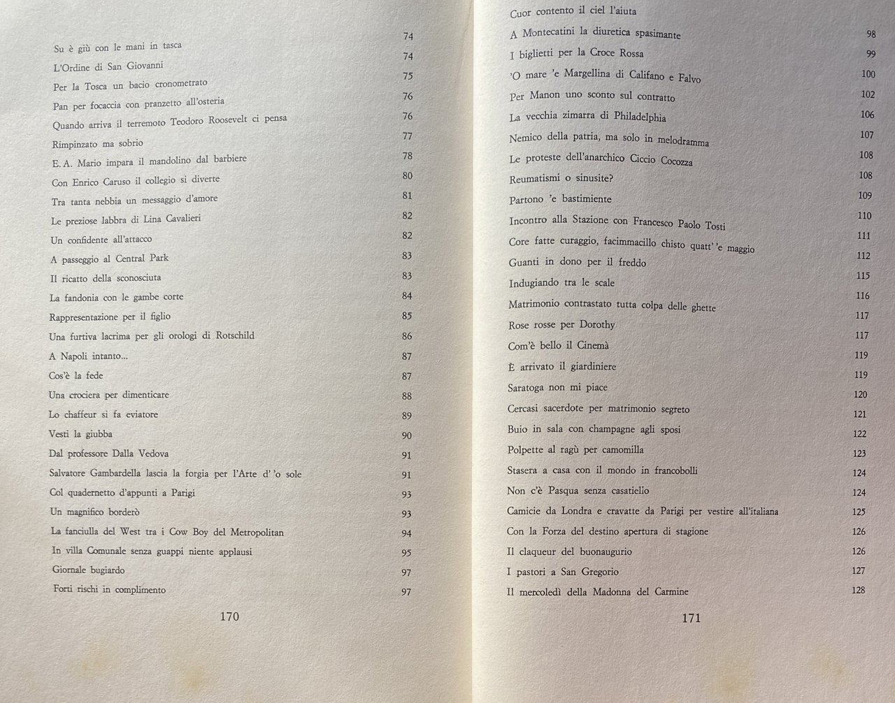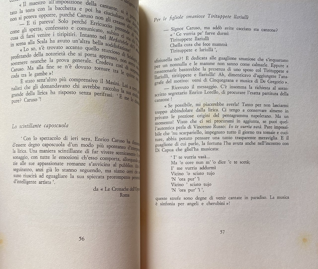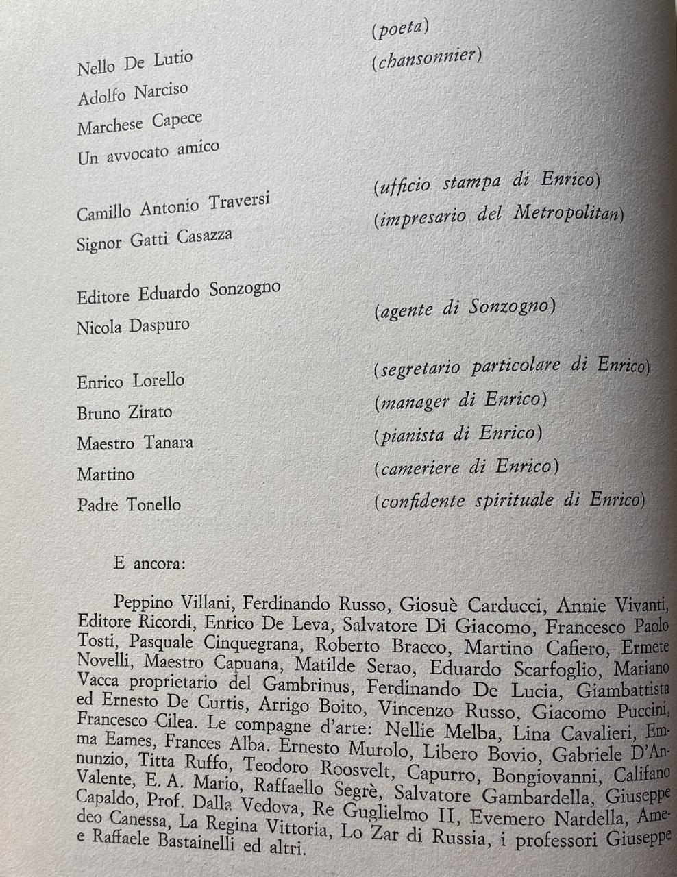 Soggetti: Musica classica Opera lirica Canzone napoletana Storia Napoli Biografie Memorie Tradizione Folklore Dialetto napoletano Napoletanità Aneddotica Galleria Umberto Salone Margherita Café chantant Teatro Festival canori Cantanti Cantautori Tenori Voce Canzoni Strofe Poesia Classici Discografia Dischi Teatro San Carlo Tradizioni popolari napoletane Enrico Caruso Memorie Strade Quartieri Centro storico Racconti Storie vere Società Pubblico Successo Sipario Palcoscenico Spettacolo Varietà Biografie Personaggi Cantanti famosi Maria Castaldi Donna Rosa Barretti Amelia Gatto San Giovanniello S. Anna alle Paludi Ada Ottocento Novecento Fofò Mimmi Dorothy Benjamin Gloria Maestro Guglielmo Vergine Maestro Schiraldi Sarnataro Fasanaro Eduardo Missiano Poetica Critica Nello De Lutio Chansonnier Adolfo Narciso Marchese Capece Camillo Antonio Traversi Gatti Casazza Impresari Metropolitan Eduardo Sonzogno Nicola Daspuro Enrico Lorello Bruno Zirato Tanara Padre Tonello Peppino Villani Ferdinando Russo Giosuè Carducci Annie Vivanti Editore Ricordi Enrico De Leva Salvatore Di Giacomo Francesco Paolo Tosti Pasquale Cinquegrana Roberto Bracco Martino Cafiero Ermete Novelli Maestro Capuana Matilde Serao Eduardo Scarfoglio Mariano Vacca Gambrinus Ferdinando De Lucia Giambattista Ernesto De Curtis Arrigo Boito Vincenzo Russo Giacomo Puccini Francesco Cilea Compagnie Arte Nellie Melba Lina Cavalieri Emma Eames Frances Alba Ernesto Murolo Libero Bovio Gabriele D'Annunzio Titta Ruffo Roosevelt Capurro Bongiovanni Califano Valente E. A. Mario Raffaello Segrè Salvatore Gambardella Giuseppe Capaldo Prof. Dalla Vedova Re Guglielmo II Evemero Nardella Amedeo Canessa Regina Vittoria Zar Russia i professori Giuseppe Raffaele Bastianelli San Carlo all'Arena Core 'ngrato America Tournée Totò Repertorio Falstaff Traviata Aida Carmen Rigoletto Manon Lescaut Tosca Lucia di Lammermoor Cinema The Legendary Enrica Donisi Mouchon Jean-Pierre Villa I Pini Palazzo Strigelli Bellosguardo Celebrità Hollywood Walk of Fame Italiani emigrati Grammy Concerti Collezionismo libri rari Vintage fuori catalogo Miseria New York Capri Divi Pedamentina Bellini Pignataro Gioconda Torna a Surriento Mergellina Bersagliera Armando Gill Piazza Dante Classical music Opera Neapolitan song History Naples Biographies Memories Tradition Neapolitan dialect Neapolitan Anecdotes Singers Songwriters Tenors Voice Songs Verses Poetry Classics Discography Records Theater Neapolitan popular traditions Memories Streets Neighborhoods Historic center Short stories True stories Society Audience Success Curtain Stage Show Variety Biographies Characters Famous singers 19th century 20th century Master Poetics Criticism Entrepreneurs King William II Queen Victoria Tsar Repertoire Celebrities Italian emigrants Concerts Collectibles rare books out of print Misery