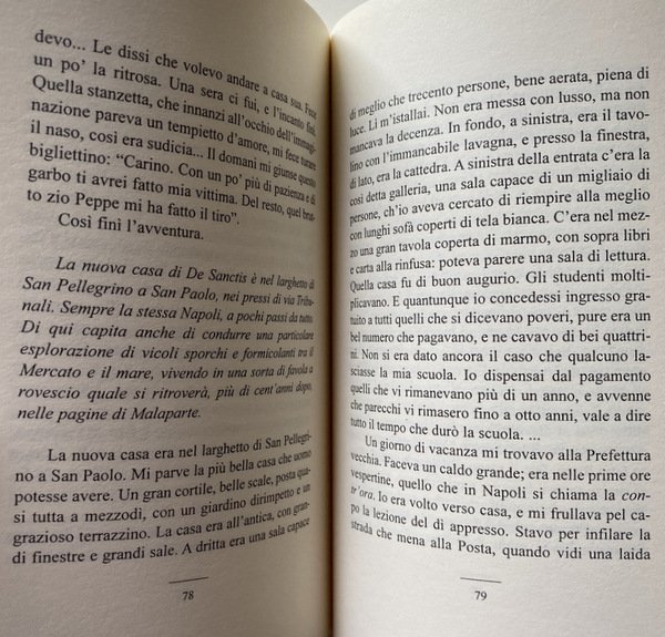 Soggetti: Umanistica Storia d'Italia Narrativa italiana Letteratura comparata Memorie Biografie Ricordi Autobiografie Diario Napoli Italia meridionale Ottocento 1859-1900 Cultura partenopea Racconti autobiografici Vita privata quotidiana Guide turistiche letterarie Voyage Grand Tour Borbone Borboni Posillipo Vesuvio Quartieri spagnoli Morra Irpino Irpinia Giovinezza Famiglia Intellettuali italiani Basilio Puoti Istruzione Pedagogia Letture Via Toledo Pignasecca Centro storico Allievi Idealismo Borghesia Miseria e nobiltà Arenaprimo San Giovanni a Carbonara Nunziatella Nicola Marselli Giustino Fortunato Pasquale Villari Angelo Camillo De Meis Diomede Marvasi Di Chirico Francesco Torraca Luigi Hegel Liberalismo Vico Bisi Gioberti Moti rivoluzionari 1848 Pio IX Libertà Mazzini Risorgimento Arresto Esilio Guerre di Indipendenza Unità Capodimonte Vomero Porta Capuana Colera Giacomo Leopardi Antonio Ranieri Rivoluzione Libri Vintage Fuori catalogo Frammento autobiografico Lezioni di grammatica Domenico Cicirelli Zia Marianna Abate Fazzini Critica Viaggio Elettorale Agnese Humanities History Italian fiction Biographies Memories Autobiographies Diary Travel Naples Southern Italy Nineteenth century Neapolitan culture Autobiographical stories Daily life Literary guides Bourbons Vesuvius Spanish quarters Youth Family Private Intellectuals School Education Pedagogy Readings Historic center Pupils Idealism Bourgeoisie Misery and nobility Liberalism Revolutionary movements Pius Freedom Arrest Exile Wars Independence Unity Cholera Revolution Out of Print Books Fragment Grammar Lessons Criticism Electoral Journey Comparative Literature Collectibles Collezionismo Genealogia abito allegra amici bella buon caffè capo cara carta casa chiesa città compagnia conte corso figli giornale giovani leggere lettere lezione maestro marchese Marietta messa morte napoletana nome occhi paese palazzo parola piazza piccola piedi potere principe ricordo sala Sanctis Santa scale scuola sedie sera signore spirito strada studi uomo vecchia vista vive volta zio Peppe Ugo Piscopo