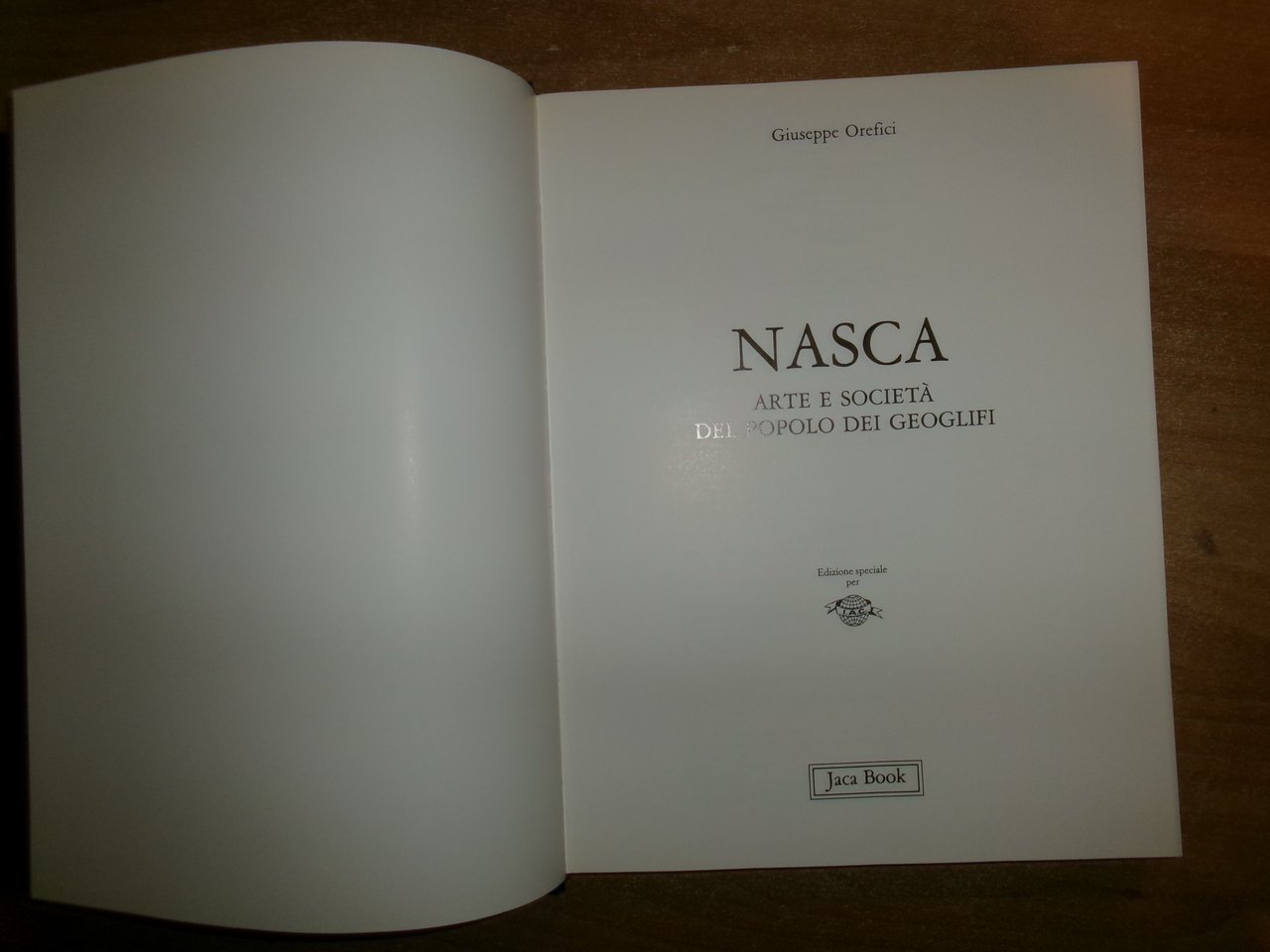 GIUSEPPE OREFICI. Milano, Edizione speciale per Jaca Book, 1993. NASCA Arte e Società del Popolo dei Geoglifi. In-4°, tela edit. bleu con sovracopertina ill. a col. 271 pp. con numerose immagini a colori e in bianco e nero. n.t. Come nuovo. Uff. C - II - 4 - 2