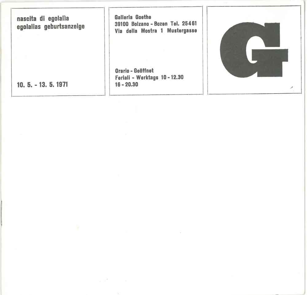 "Nascita di Egolalìa" alla Galleria Goethe di Bolzano. 1971