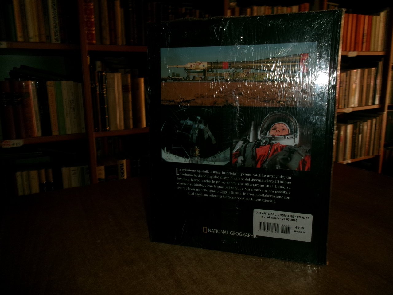 National Geographic - LA SPUTNIK E ALTRE MISSIONI RUSSE - Atlante del Cosmo n. 57. In-8° grande, cartonato edit. ill. a col. con numerose illustrazioni a colori anche a piena pagina. In stato di nuovo nella confezione originale. Uff. C - IV - 7