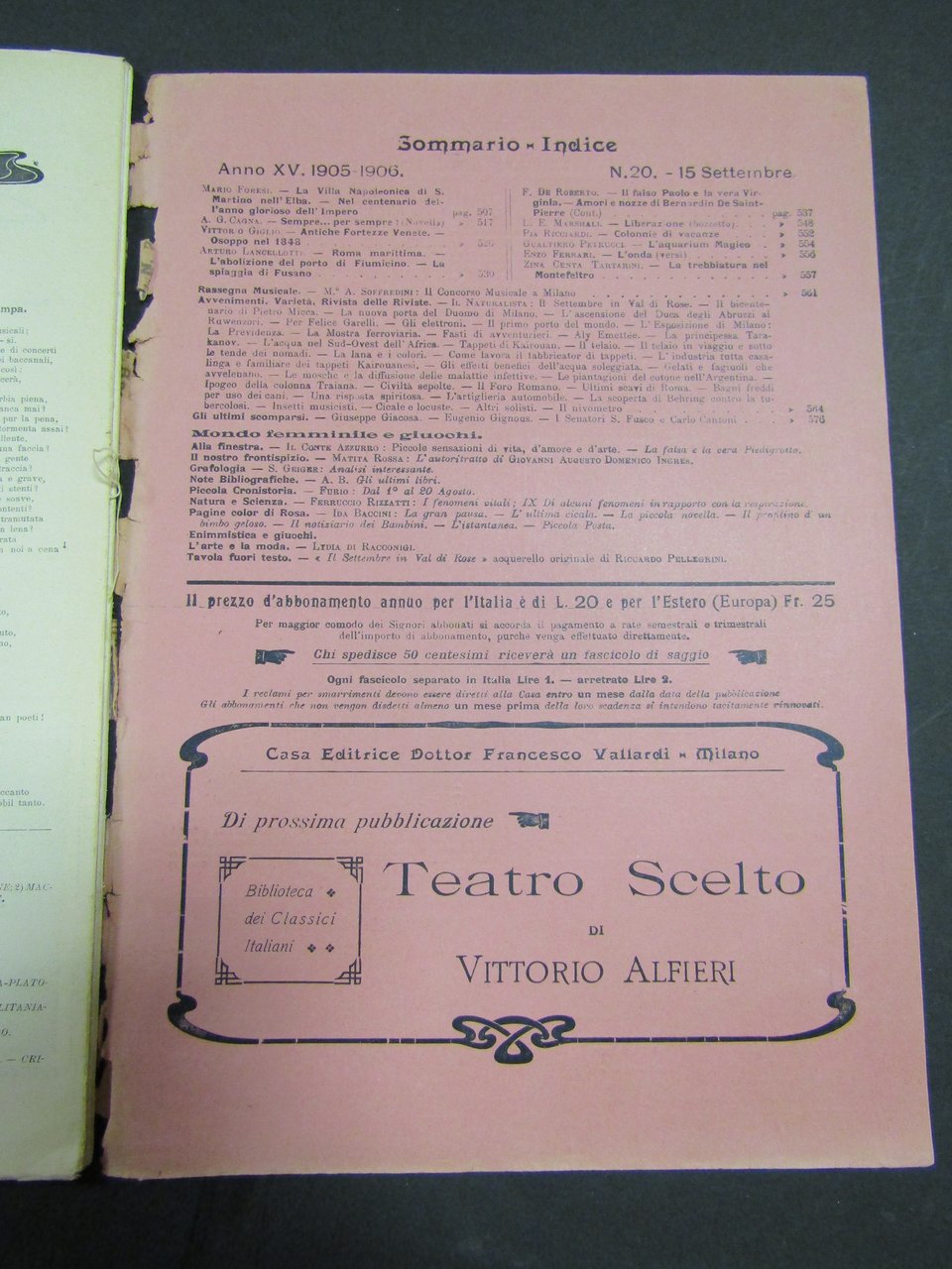 Natura e arte. Rivista quindicinale illustrata. Anno XV. Num. 20. Dottor Francesco Vallardi. 15 settembre 1906